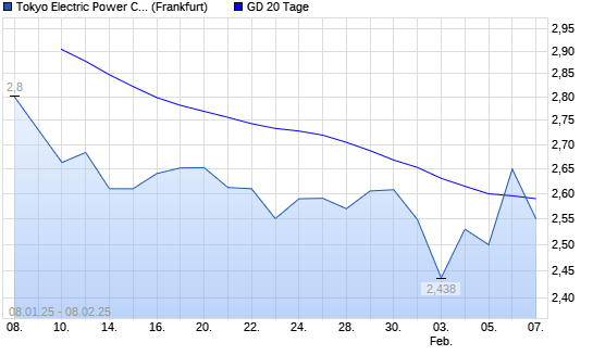 Mit dem Rücksetzer auf 2,55 EUR hat die Tokyo Electric Power-Aktie am 07.02.2025 die 20-Tage-Linie nach unten gekreuzt.