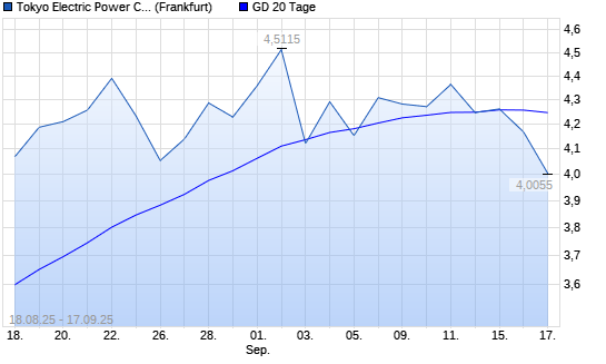 Mit dem Rücksetzer auf 4,17 EUR hat die Tokyo Electric Power-Aktie am 16.09.2025 die 20-Tage-Linie nach unten gekreuzt.