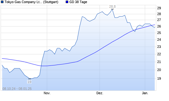 Mit dem Rücksetzer auf 26,40 EUR hat die Tokyo Gas-Aktie am 07.01.2025 die 38-Tage-Linie nach unten gekreuzt.