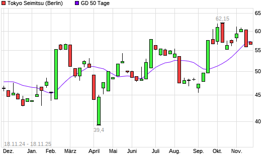 Mit dem Anstieg auf 57,20 EUR hat die Tokyo Seimitsu-Aktie am 17.11.2025 die 50-Tage-Linie nach oben gekreuzt.