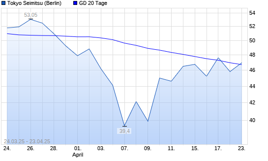 Mit dem Rücksetzer auf 45,84 EUR hat die Tokyo Seimitsu-Aktie am 22.04.2025 die 20-Tage-Linie nach unten gekreuzt.