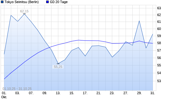 Mit dem Rücksetzer auf 57,30 EUR hat die Tokyo Seimitsu-Aktie am 30.10.2025 die 20-Tage-Linie nach unten gekreuzt.