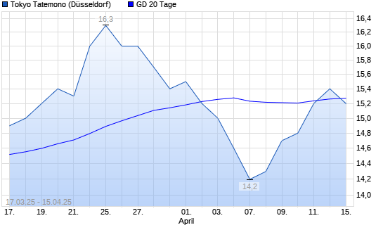 Mit dem Anstieg auf 15,50 EUR hat die Tokyo Tatemono-Aktie am 14.04.2025 die 20-Tage-Linie nach oben gekreuzt.