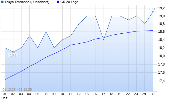 Mit dem Anstieg auf 19,00 EUR hat die Tokyo Tatemono-Aktie am 30.12.2025 die 20-Tage-Linie nach oben gekreuzt.