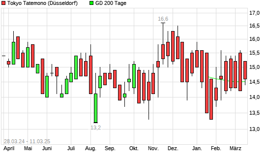 Mit dem Anstieg auf 15,30 EUR hat die Tokyo Tatemono-Aktie am 10.03.2025 die 200-Tage-Linie nach oben gekreuzt.