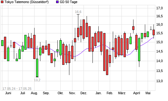 Mit dem Anstieg auf 15,50 EUR hat die Tokyo Tatemono-Aktie am 16.05.2025 die 50-Tage-Linie nach oben gekreuzt.