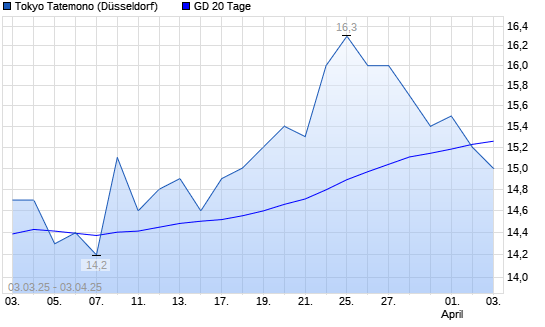 Mit dem Rücksetzer auf 15,30 EUR hat die Tokyo Tatemono-Aktie am 02.04.2025 die 20-Tage-Linie nach unten gekreuzt.