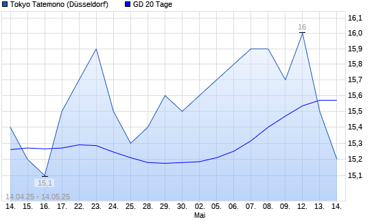 Mit dem Rücksetzer auf 15,60 EUR hat die Tokyo Tatemono-Aktie am 13.05.2025 die 20-Tage-Linie nach unten gekreuzt.