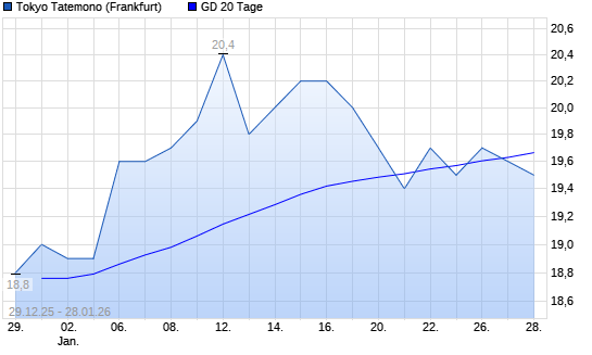 Mit dem Rücksetzer auf 19,60 EUR hat die Tokyo Tatemono-Aktie am 27.01.2026 die 20-Tage-Linie nach unten gekreuzt.