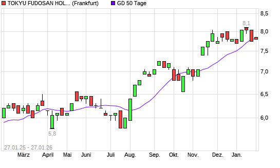 Mit dem Anstieg auf 7,85 EUR hat die Tokyu Fudosan Holdings-Aktie am 26.01.2026 die 50-Tage-Linie nach oben gekreuzt.