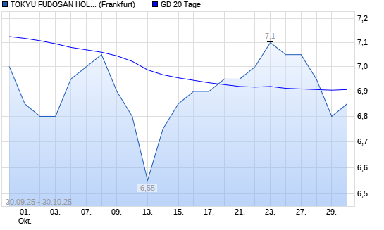 Mit dem Rücksetzer auf 6,80 EUR hat die Tokyu Fudosan Holdings-Aktie am 29.10.2025 die 20-Tage-Linie nach unten gekreuzt.