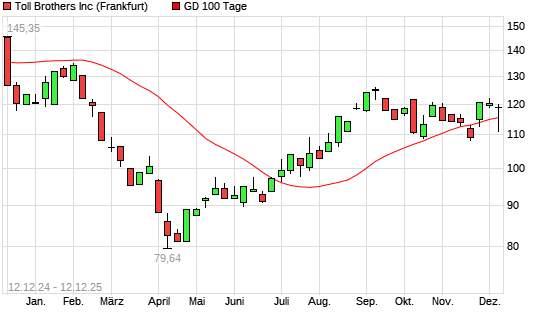 Mit dem Anstieg auf 117,80 EUR hat die Toll Brothers-Aktie am 11.12.2025 die 100-Tage-Linie nach oben gekreuzt.