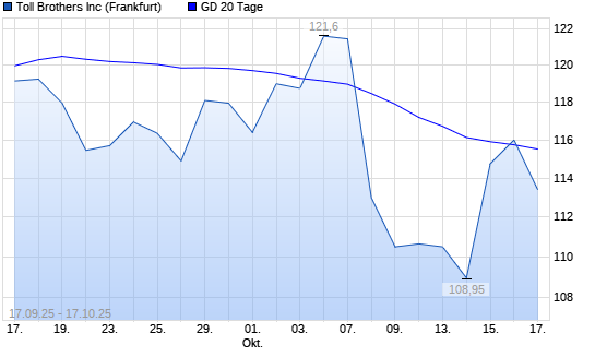 Mit dem Anstieg auf 116,00 EUR hat die Toll Brothers-Aktie am 16.10.2025 die 20-Tage-Linie nach oben gekreuzt.