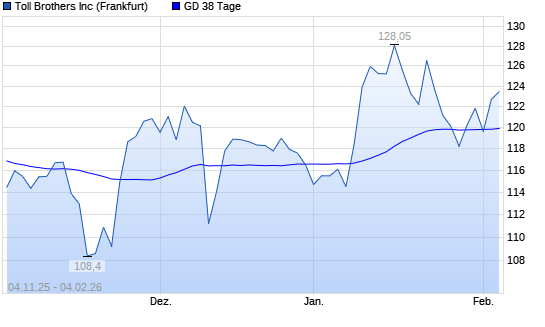 Mit dem Anstieg auf 122,70 EUR hat die Toll Brothers-Aktie am 03.02.2026 die 38-Tage-Linie nach oben gekreuzt.