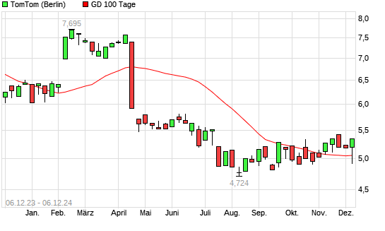 Mit dem Anstieg auf 5,35 EUR hat die TomTom-Aktie am 05.12.2024 die 100-Tage-Linie nach oben gekreuzt.
