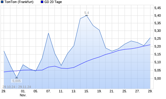 Mit dem Rücksetzer auf 5,20 EUR hat die TomTom-Aktie am 28.11.2024 die 20-Tage-Linie nach unten gekreuzt.