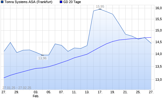 Mit dem Anstieg auf 14,69 EUR hat die Tomra Systems-Aktie am 26.02.2025 die 20-Tage-Linie nach oben gekreuzt.
