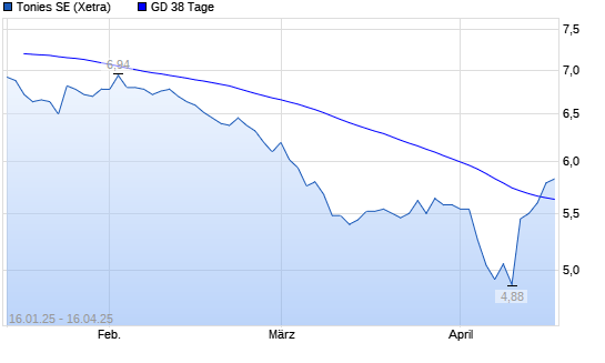 Mit dem Rücksetzer auf 5,50 EUR hat die Tonies-Aktie am 15.04.2025 die 38-Tage-Linie nach unten gekreuzt.