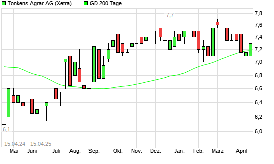 Mit dem Anstieg auf 7,10 EUR hat die Tonkens Agrar-Aktie am 14.04.2025 die 200-Tage-Linie nach oben gekreuzt.