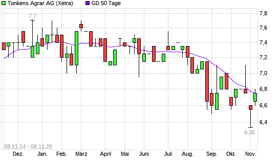 Mit dem Anstieg auf 6,70 EUR hat die Tonkens Agrar-Aktie am 07.11.2025 die 50-Tage-Linie nach oben gekreuzt.