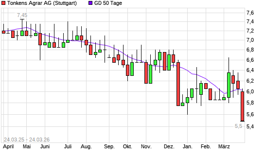 Mit dem Anstieg auf 6,15 EUR hat die Tonkens Agrar-Aktie am 23.03.2026 die 50-Tage-Linie nach oben gekreuzt.