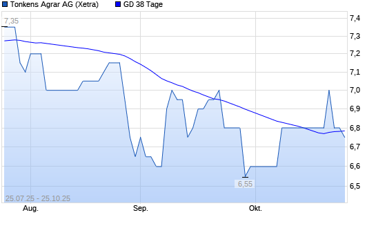 Mit dem Rücksetzer auf 6,60 EUR hat die Tonkens Agrar-Aktie am 24.10.2025 die 38-Tage-Linie nach unten gekreuzt.Die Tonkens Agrar-Aktie befindet sich seit dem 21.07.2025 im langfristigen ...weiterlesen