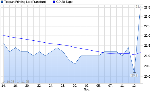 Mit dem Rücksetzer auf 20,20 EUR hat die Toppan Printing-Aktie am 13.11.2025 die 20-Tage-Linie nach unten gekreuzt.