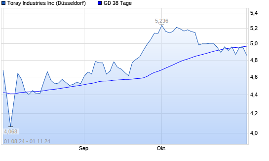 Mit dem Anstieg auf 5,00 EUR hat die Toray Industries-Aktie am 31.10.2024 die 38-Tage-Linie nach oben gekreuzt.