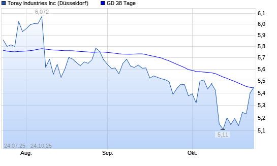 Mit dem Anstieg auf 5,48 EUR hat die Toray Industries-Aktie am 23.10.2025 die 38-Tage-Linie nach oben gekreuzt.