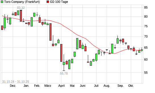 Mit dem Anstieg auf 64,96 EUR hat die Toro Company-Aktie am 30.10.2025 die 100-Tage-Linie nach oben gekreuzt.
