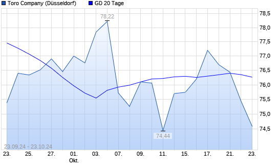 Mit dem Rücksetzer auf 75,46 EUR hat die Toro Company-Aktie am 22.10.2024 die 20-Tage-Linie nach unten gekreuzt.