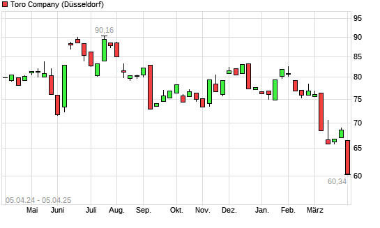 Mit dem Rücksetzer auf 59,16 EUR hat die Toro Company-Aktie (ISIN US8910921084) am 04.04.2025 ein neues 3-Jahres-Tief erreicht und damit den Kurs vom 03.04.2025 eingestellt.Die Toro Company-Aktie ...weiterlesen