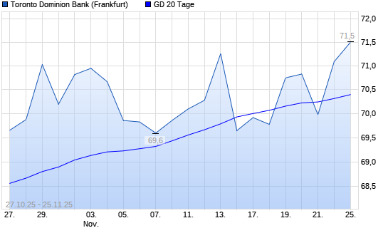 Mit dem Anstieg auf 71,09 EUR hat die Toronto-Dominion Bank-Aktie am 24.11.2025 die 20-Tage-Linie nach oben gekreuzt.