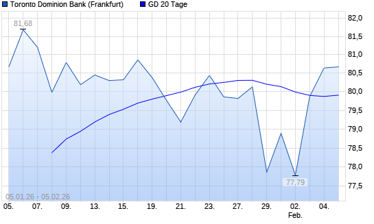 Mit dem Anstieg auf 80,64 EUR hat die Toronto-Dominion Bank-Aktie am 04.02.2026 die 20-Tage-Linie nach oben gekreuzt.