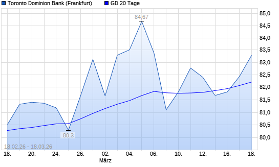 Mit dem Anstieg auf 82,43 EUR hat die Toronto-Dominion Bank-Aktie am 17.03.2026 die 20-Tage-Linie nach oben gekreuzt.