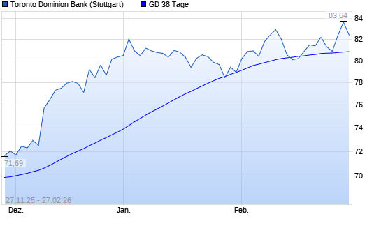 Mit dem Anstieg auf 81,67 EUR hat die Toronto-Dominion Bank-Aktie am 26.02.2026 die 38-Tage-Linie nach oben gekreuzt.