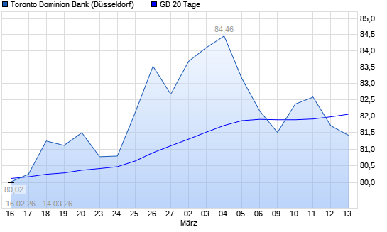 Mit dem Rücksetzer auf 81,67 EUR hat die Toronto-Dominion Bank-Aktie am 13.03.2026 die 20-Tage-Linie nach unten gekreuzt.