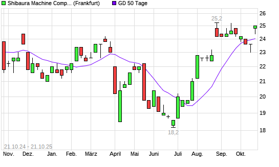Mit dem Anstieg auf 24,80 EUR hat die Toshiba Machine-Aktie am 20.10.2025 die 50-Tage-Linie nach oben gekreuzt.