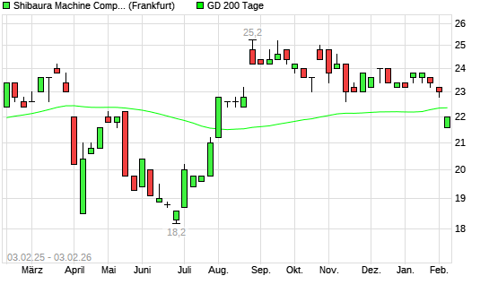 Mit dem Rücksetzer auf 21,60 EUR hat die Toshiba Machine-Aktie am 02.02.2026 die 200-Tage-Linie nach unten gekreuzt.
