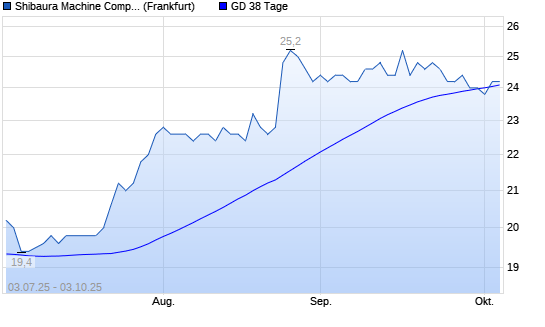 Mit dem Anstieg auf 24,20 EUR hat die Toshiba Machine-Aktie am 02.10.2025 die 38-Tage-Linie nach oben gekreuzt.Die Toshiba Machine-Aktie befindet sich seit dem 29.07.2025 im langfristigen Aufwärtstrend ...weiterlesen