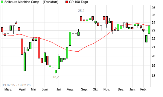 Mit dem Anstieg auf 24,20 EUR hat die Toshiba Machine-Aktie am 12.02.2026 die 100-Tage-Linie nach oben gekreuzt.Die Toshiba Machine-Aktie befindet sich seit dem 09.02.2026 im langfristigen Aufwärtstrend ...weiterlesen