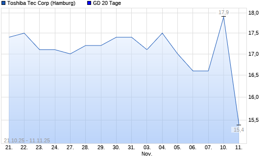 Mit dem Anstieg auf 16,90 EUR hat die Toshiba Tec-Aktie am 10.11.2025 die 20-Tage-Linie nach oben gekreuzt.