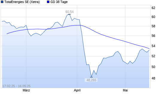 Mit dem Anstieg auf 53,30 EUR hat die Totalenergies (ex Total)-Aktie am 15.05.2025 die 38-Tage-Linie nach oben gekreuzt.