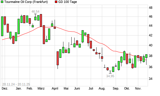 Mit dem Anstieg auf 37,82 EUR hat die Tourmaline Oil-Aktie am 19.11.2025 die 100-Tage-Linie nach oben gekreuzt.
