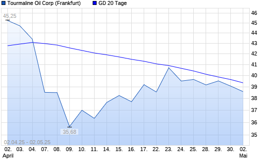 Mit dem Anstieg auf 39,06 EUR hat die Tourmaline Oil-Aktie am 01.05.2025 die 20-Tage-Linie nach oben gekreuzt.