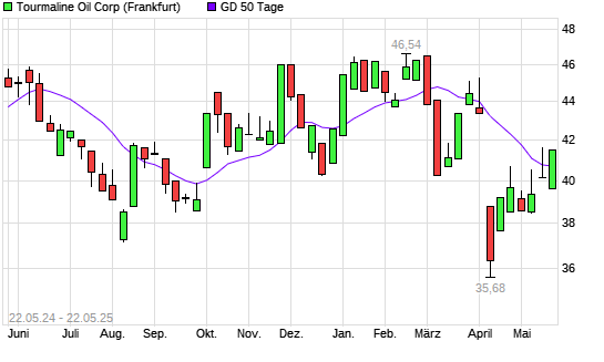 Mit dem Anstieg auf 40,64 EUR hat die Tourmaline Oil-Aktie am 21.05.2025 die 50-Tage-Linie nach oben gekreuzt.