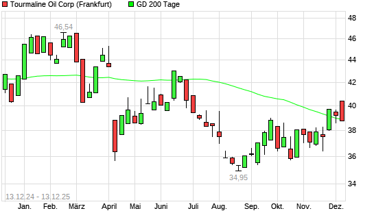 Mit dem Rücksetzer auf 38,76 EUR hat die Tourmaline Oil-Aktie am 12.12.2025 die 200-Tage-Linie nach unten gekreuzt.