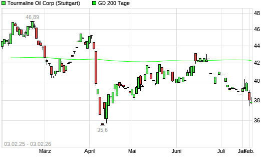 Mit dem Rücksetzer auf 38,00 EUR hat die Tourmaline Oil-Aktie am 02.02.2026 die 200-Tage-Linie nach unten gekreuzt.