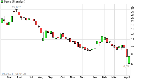 Mit dem Rücksetzer auf 6,05 EUR hat die Towa-Aktie (ISIN JP3555700008) am 07.04.2025 ein neues 12-Monats-Tief erreicht und damit den Kurs vom 04.04.2025 eingestellt.