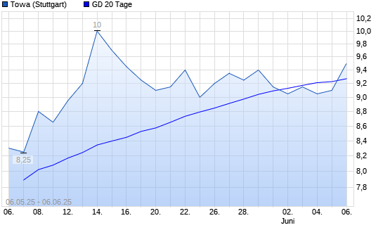 Mit dem Anstieg auf 9,35 EUR hat die Towa-Aktie am 05.06.2025 die 20-Tage-Linie nach oben gekreuzt.